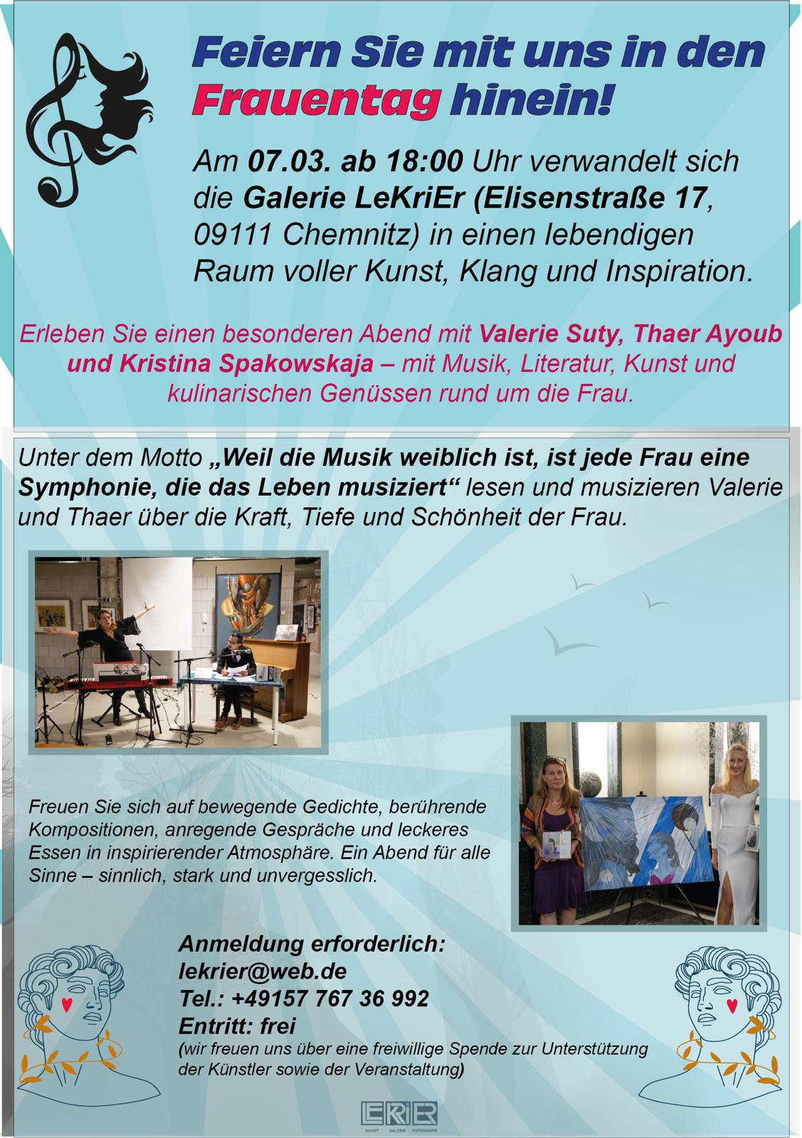 Let's celebrate the womens day at LeKriEr! Our gallery transforms in to a place with art, music and inspiration. |