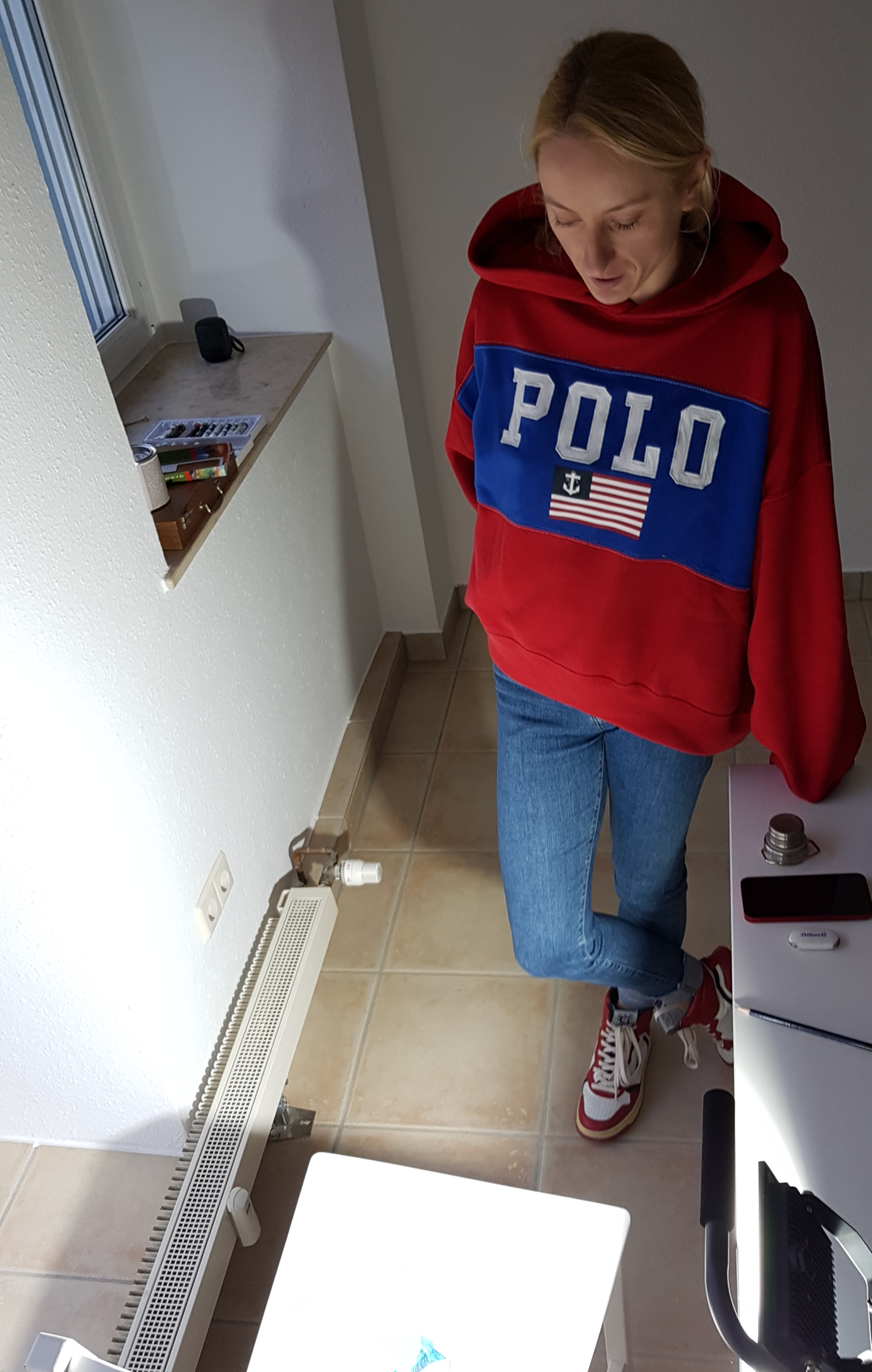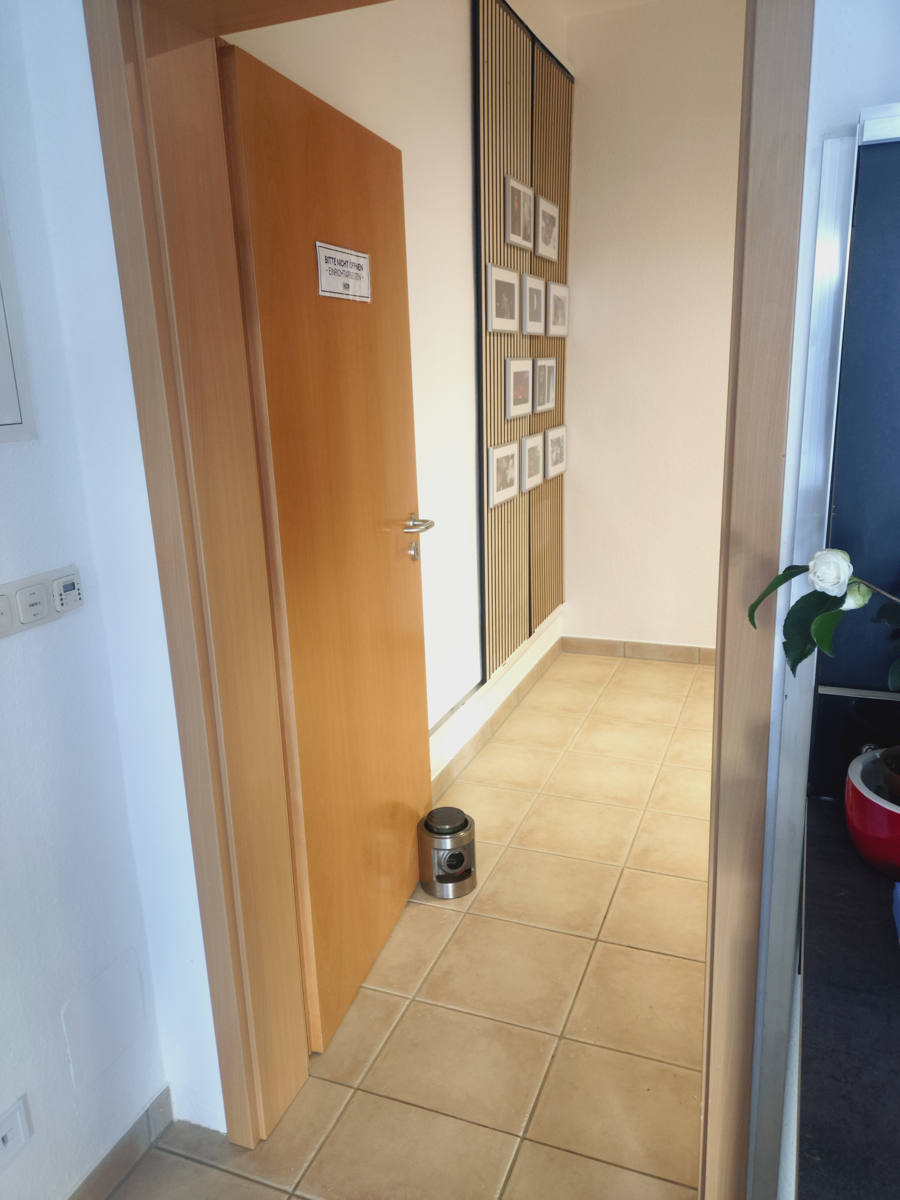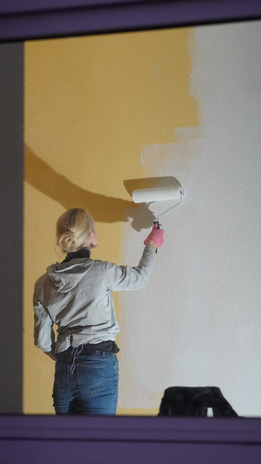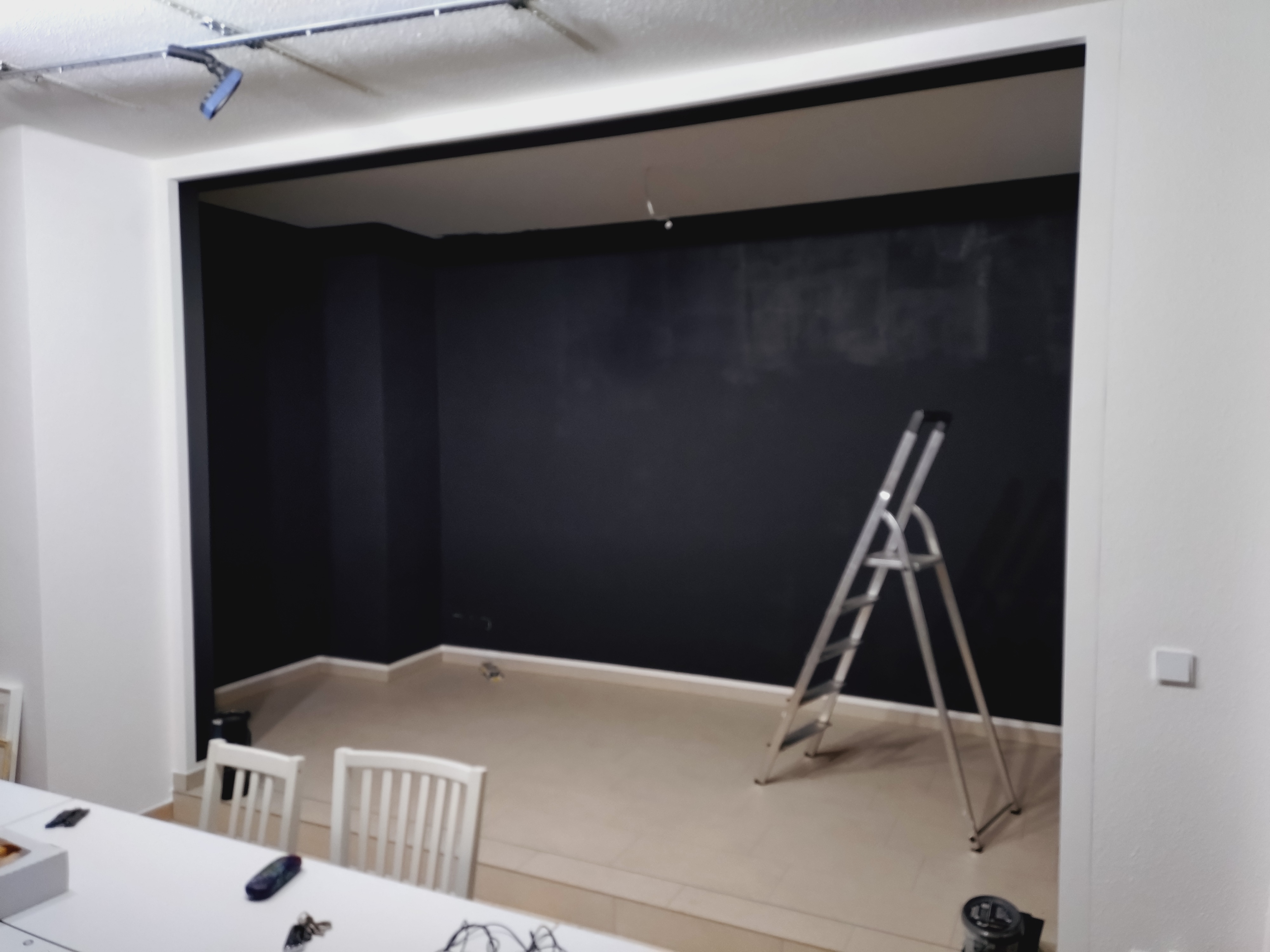 Malerarbeiten Flur, intern genannt als das "schwarze Loch". Weitere Bilder ziehen ein. Einbau der Fotowand im Fotostudio |