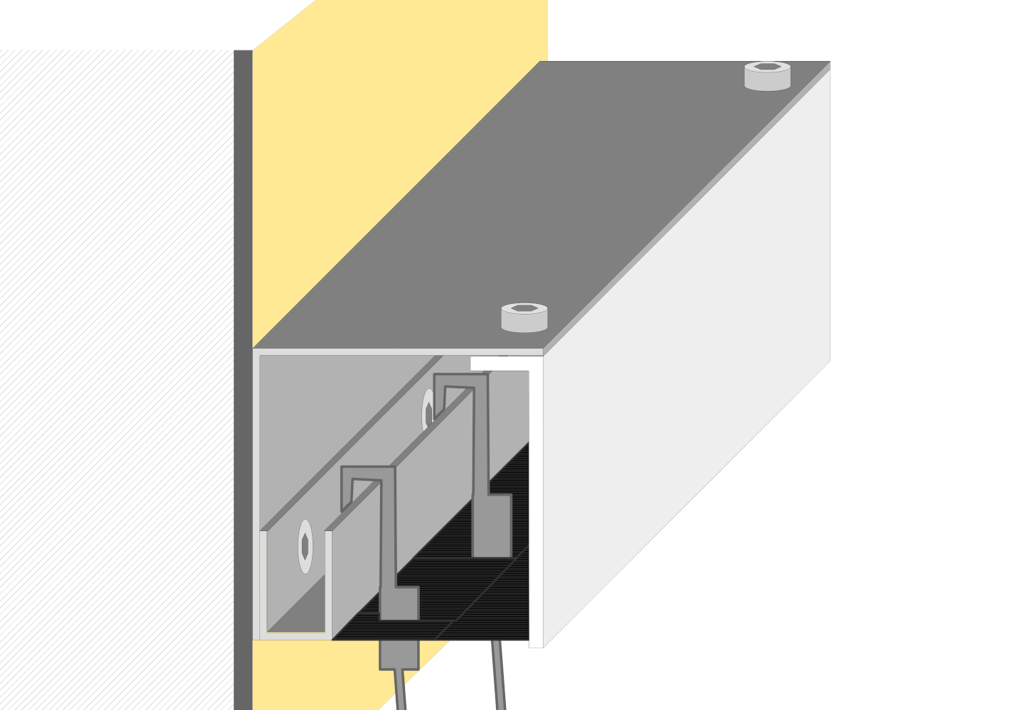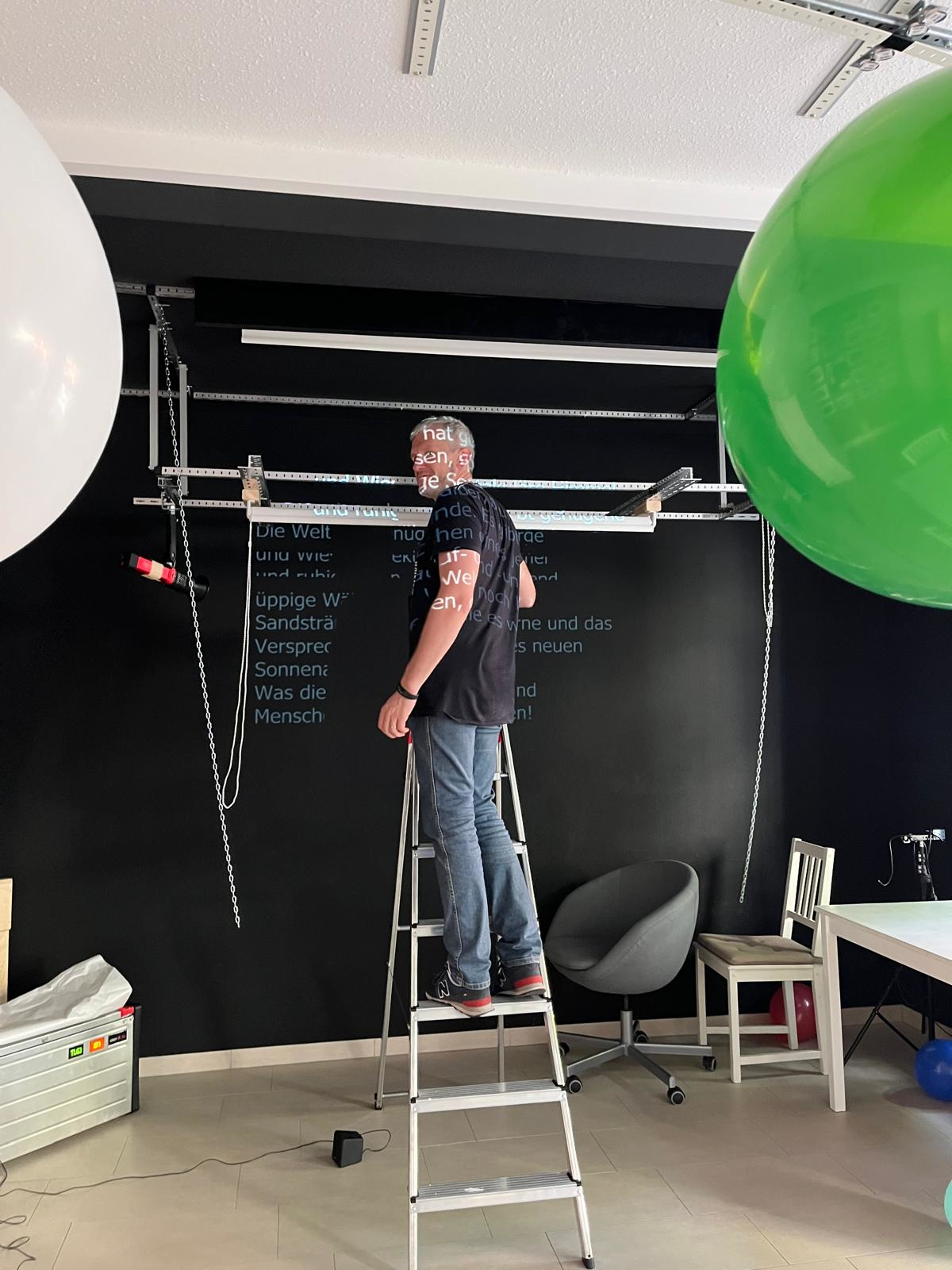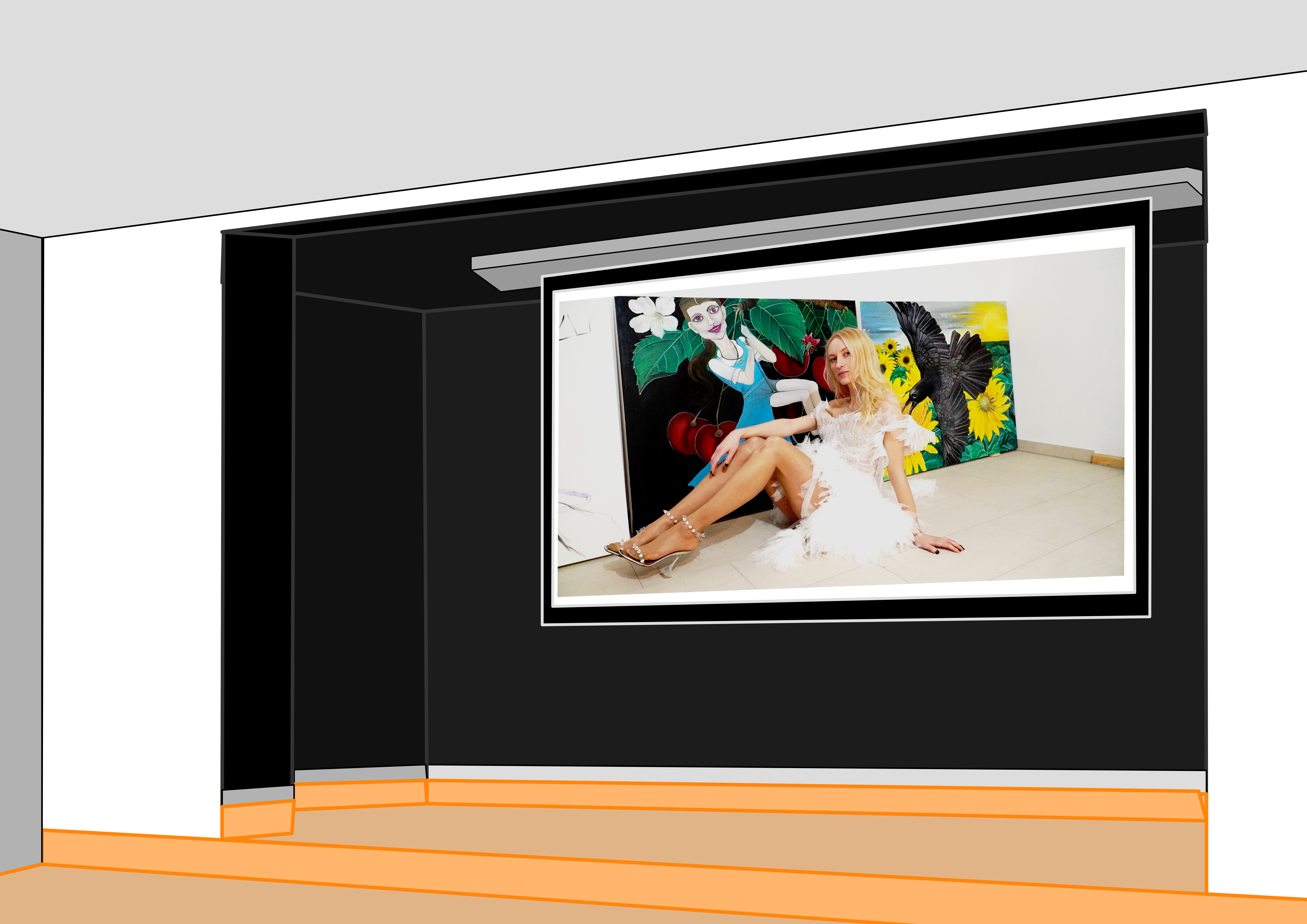 Fertigstellung des Spotträgers und der Malerarbeiten. Installation der Schwerlastbilderschienen |