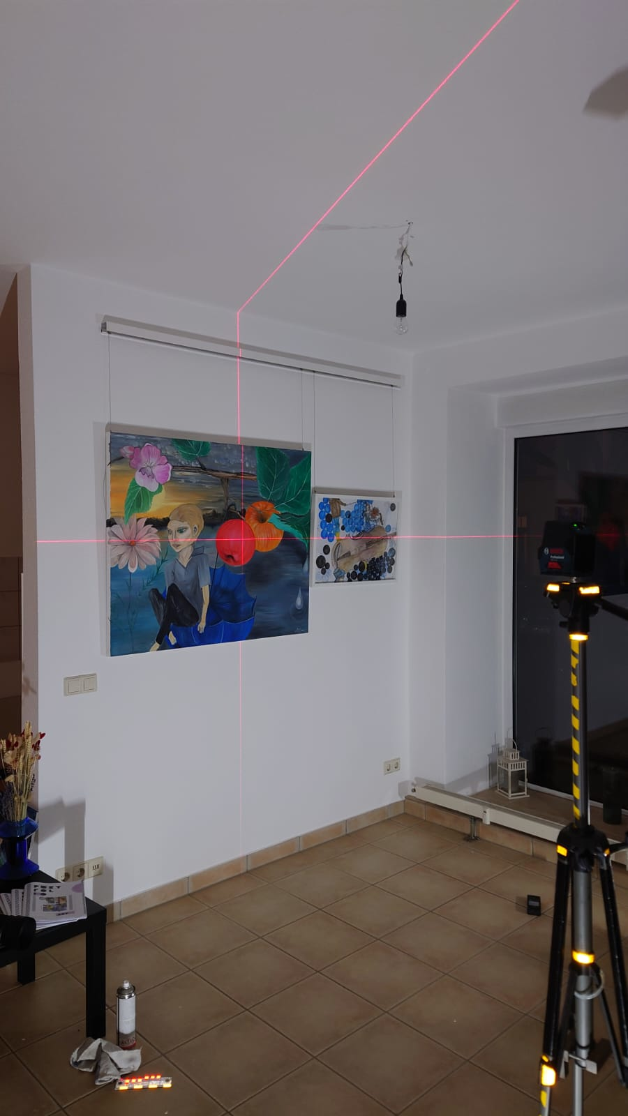 Installation der Bilderschienen und Probehängen der Gemälde. |