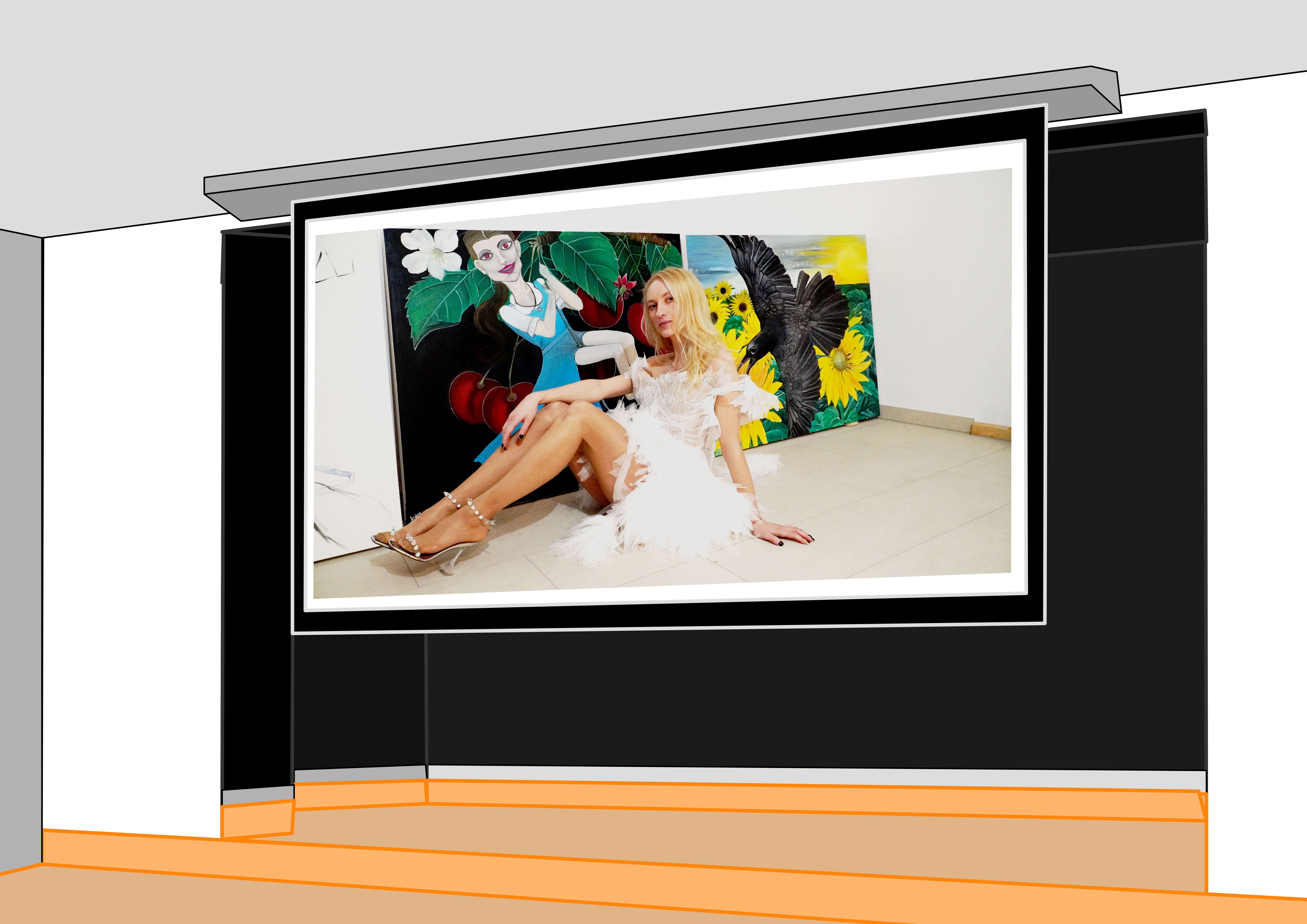 Fertigstellung der Bühne mit Lichtleisten, Malerarbeiten, Installation der Leinwandtraversen. |